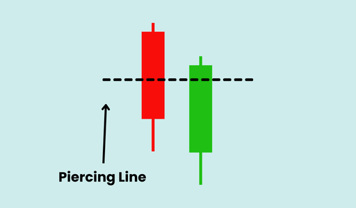The Piercing Line is a two-candle bullish reversal pattern that occurs at the end of a downtrend. It begins with a strong red candle, followed by a green candle that gaps lower but then rallies significantly to close deep within the body of the previous day’s red candle. It represents a "failed breakdown" where the bears lost their grip and the bulls reclaimed the territory.