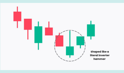 The Inverted Hammer is a bullish reversal pattern that appears at the bottom of a downtrend. It looks like a Shooting Star, but its context is the opposite.