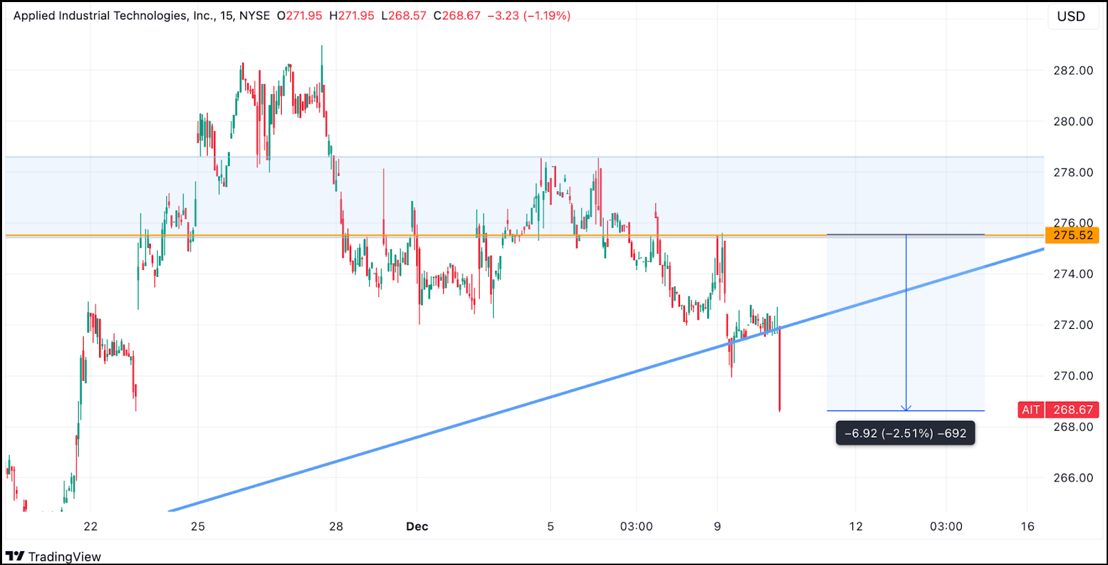 On Dec 2, I recommended a SHORT position in AIT at $275.53.