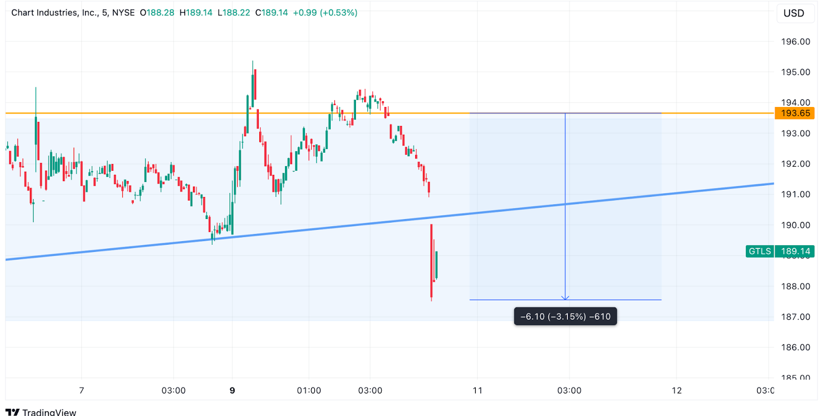 It finally broke the trendline and hit a low of $187.62, where I closed the trade.