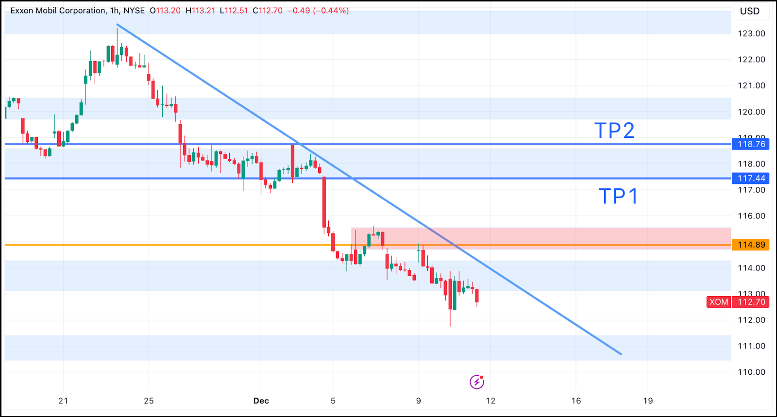 For now, we’re waiting for the price to break the trendline and resistance zone.
