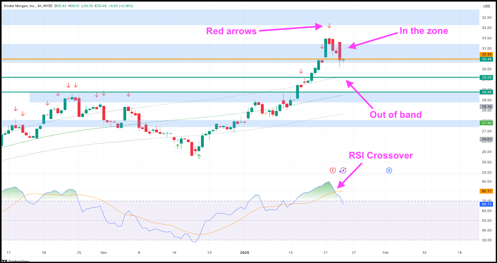 Same thing, I'm calling a sell position at $30.48 as it reflects the same bearish sentiment in the energy sector.