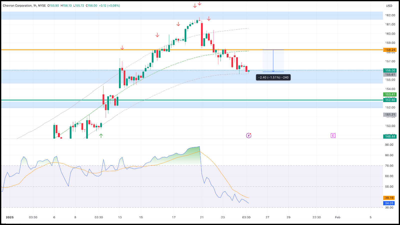 With CVX, I recommended a short entry at $158.24.