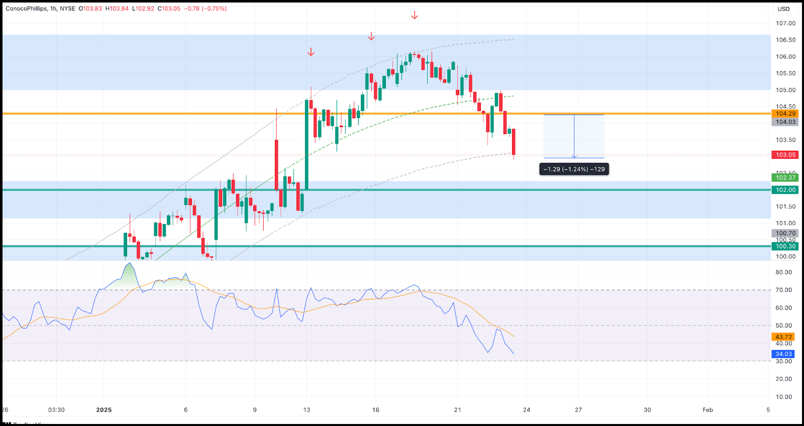 I initiated a short position on COP at $104.29 on Wednesday.