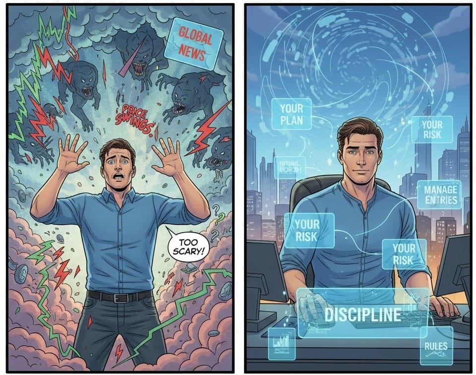 Many traders hesitate because markets feel unpredictable. Every price swing seems random, every news headline threatening. That fear makes them avoid trading altogether.