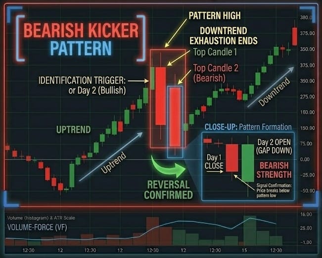 - THEN: The pattern is a valid Bearish Kicker. The "Gap" has completely bypassed the previous day's trading range, leaving every single person who bought yesterday at an immediate loss.