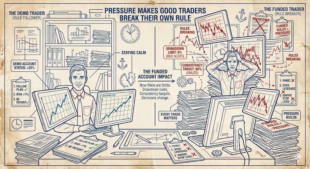 Now there are limits. Drawdown rules. Consistency targets. Every trade feels like it matters more. The pressure builds quietly.
