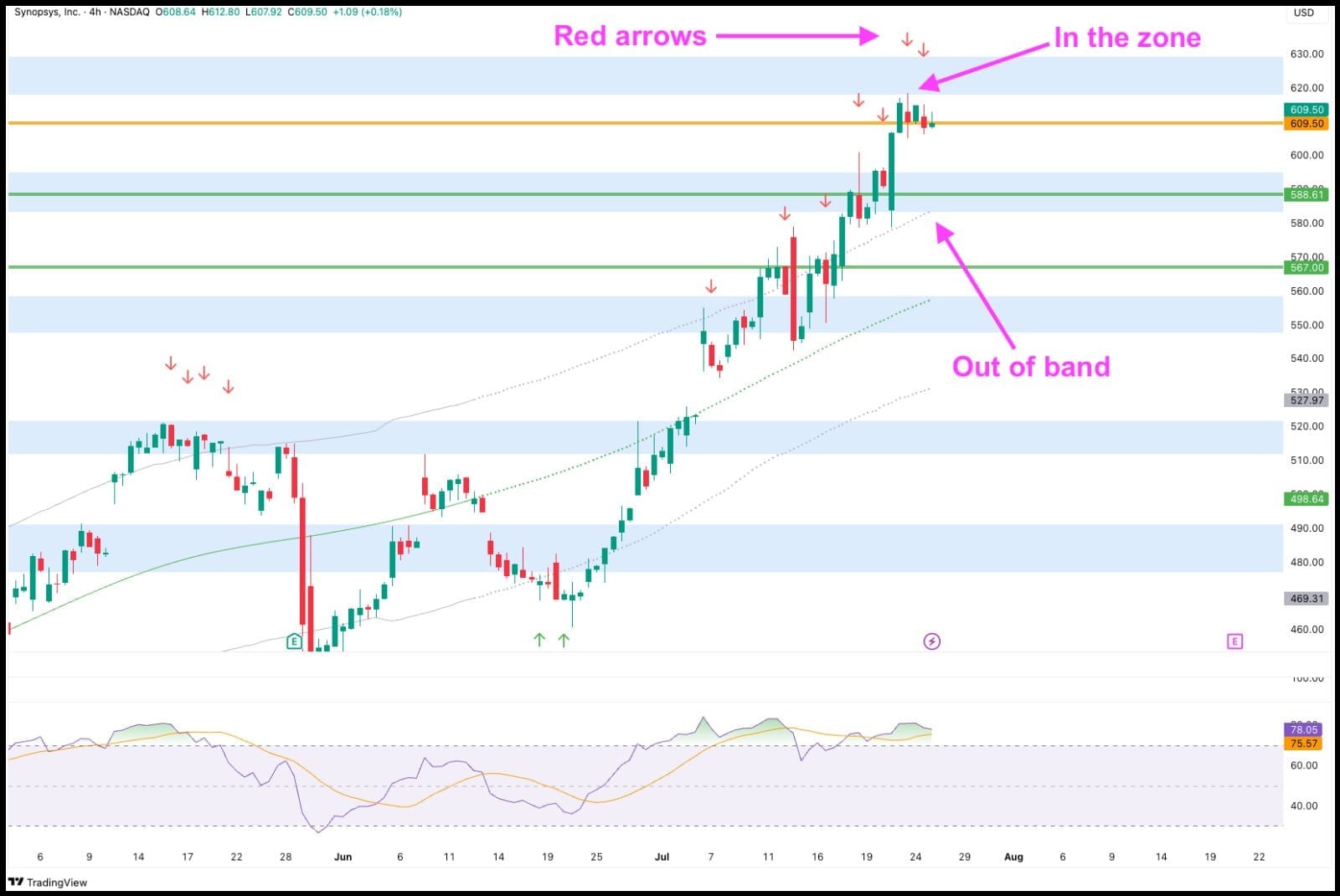 Time to hit a sell at $609.5.