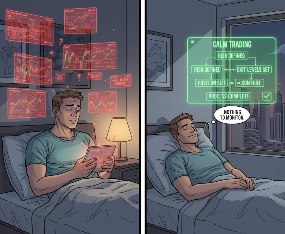 Losing sleep comes from uncertainty. Open risk with no plan keeps the mind active. Random entries create worry. Late-night chart checks follow unclear rules.