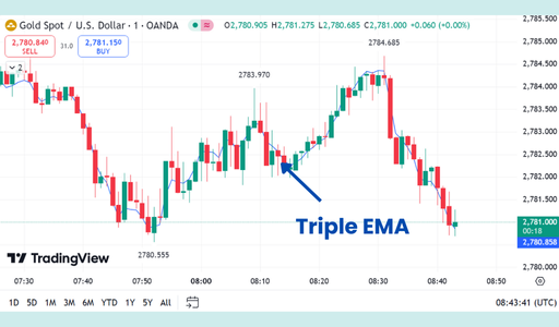 The TEMA is a high-speed technical indicator designed to remove the "lag" associated with traditional moving averages. By using a multiple exponential smoothing process, it stays much closer to the current price than a standard EMA. It is specifically built for short-term traders who need to identify trend changes the moment they happen