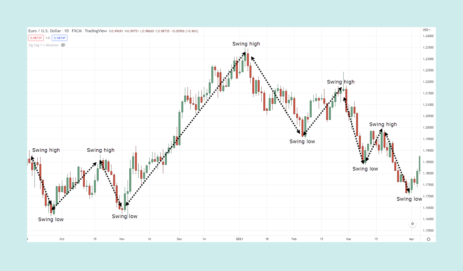 - THEN: The pattern is high-conviction. Because the Zig Zag filters out noise, a chart pattern that is visible on this indicator is much more significant than one hidden in a "messy" candlestick chart.