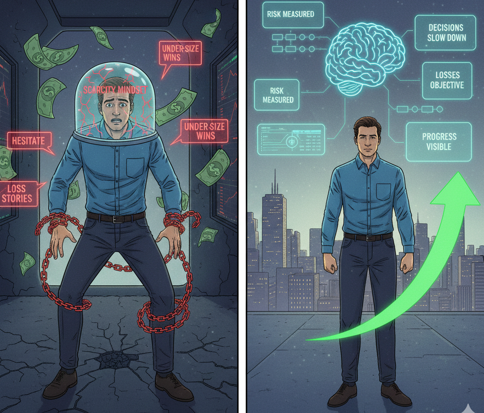 Those ideas shape every decision. They hesitate. They under-size wins. They exit early. Not because markets are hard. Because their thinking is capped.