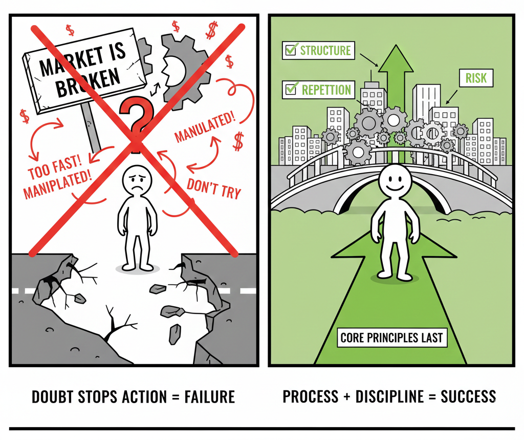 Every generation believes the market is broken. Too fast. Too manipulated. Too different from before. That belief usually appears right before someone decides not to try.