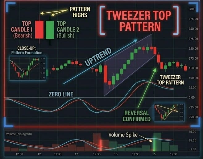 The "Double-Tap" Secret: A Tweezer Top is essentially a "Double Top" pattern compressed into a very short timeframe. The most powerful Tweezer Tops are those where the matching highs are also the daily or weekly highs.