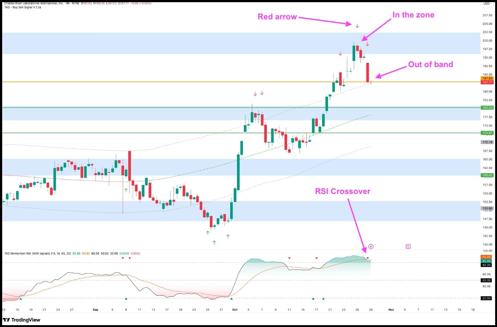 After that strong rally, CRL is showing clear signs of exhaustion.