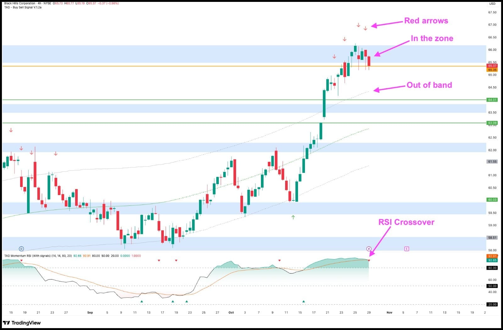 Price has pushed into our AV SNR zone, red arrows have appeared, and RSI has just crossed down.