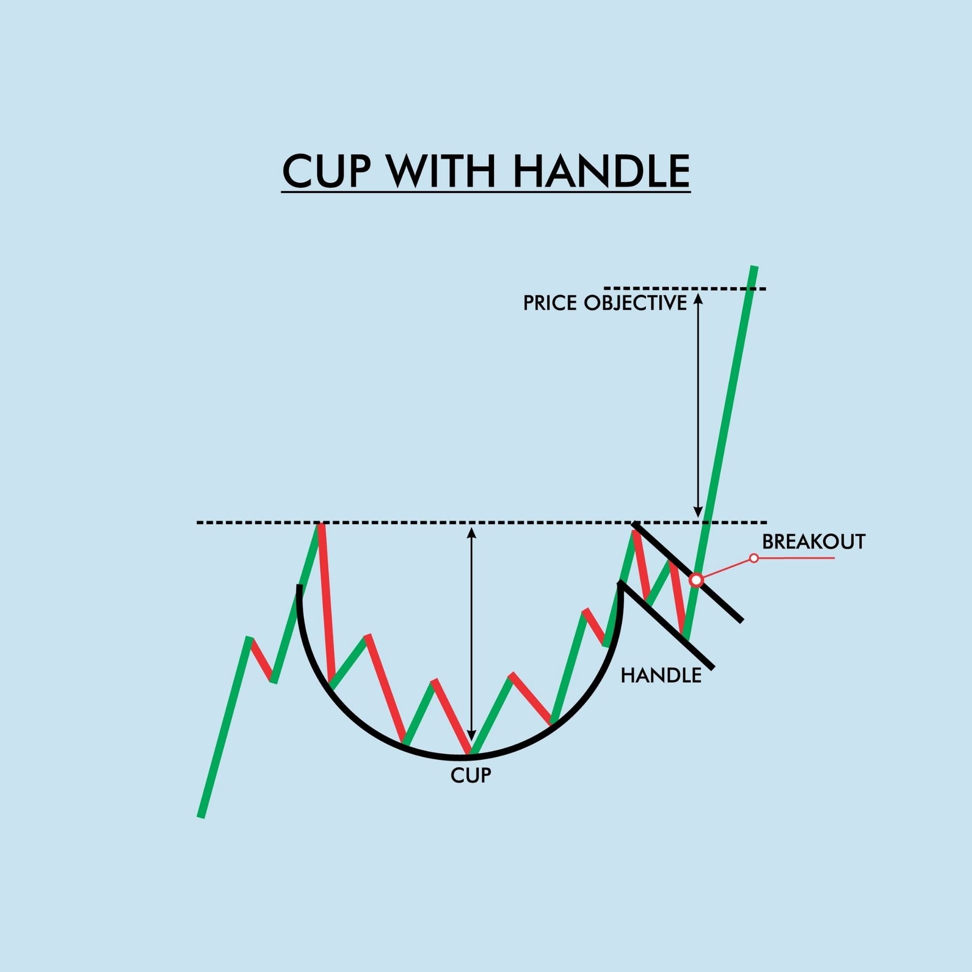 Target Price: The price target is calculated by measuring the depth of the cup (from the rim to the bottom) and projecting that distance upward from the breakout point of the handle.