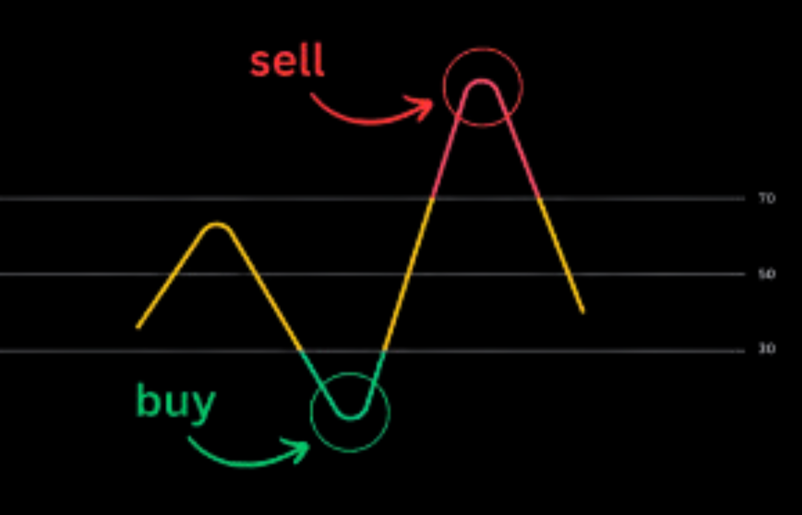 The RSI scale goes from 0 to 100. If it's above 70, the market might be overbought (prices rose too fast).