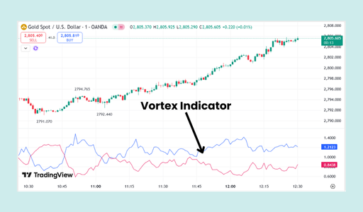 - Use with Other Indicators: The Vortex Indicator works best in trending markets and can generate false signals in choppy or ranging markets. For this reason, it is often used with other indicators like moving averages to confirm signals and filter out noise.