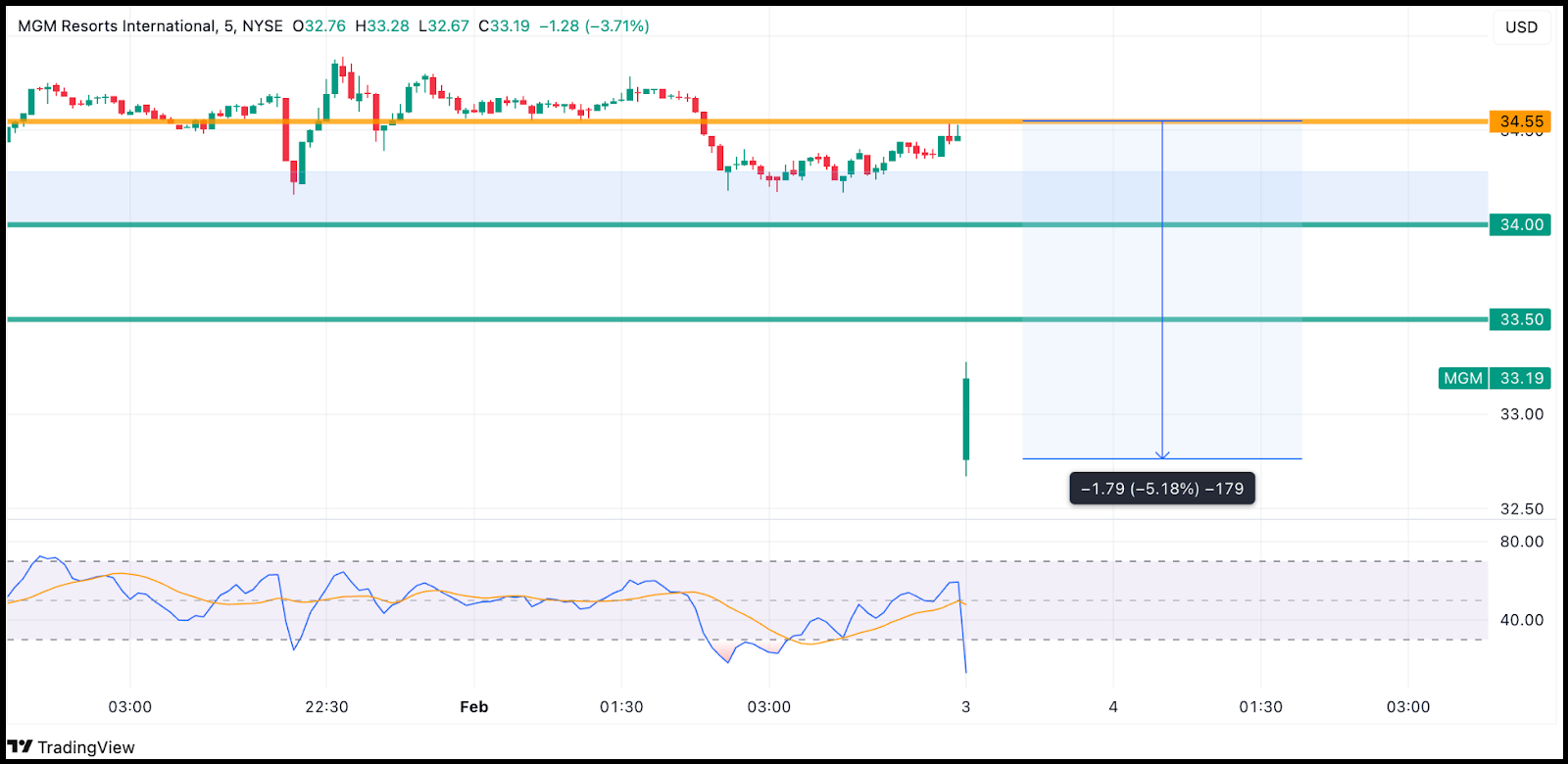 The technical setup suggests further downside, but earnings are set for Feb 6, which adds a layer of uncertainty.