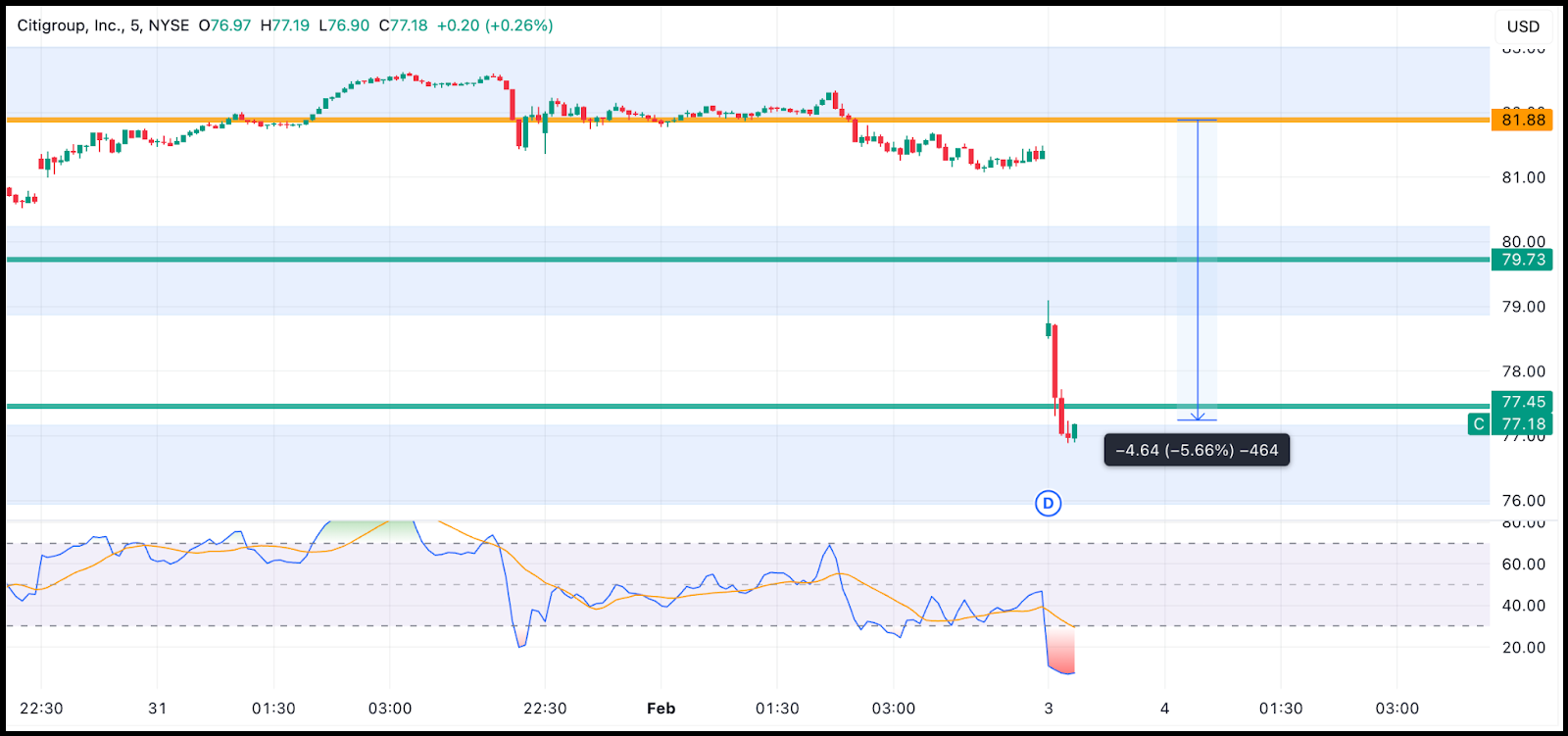 We’re turning our attention to two major financial stocks that are showing signs of weakness.
