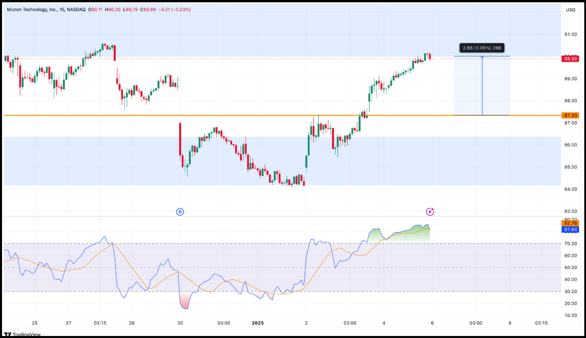 I've taken partial profits by closing half the position at $90.01, locking in a solid 3.05% gain.