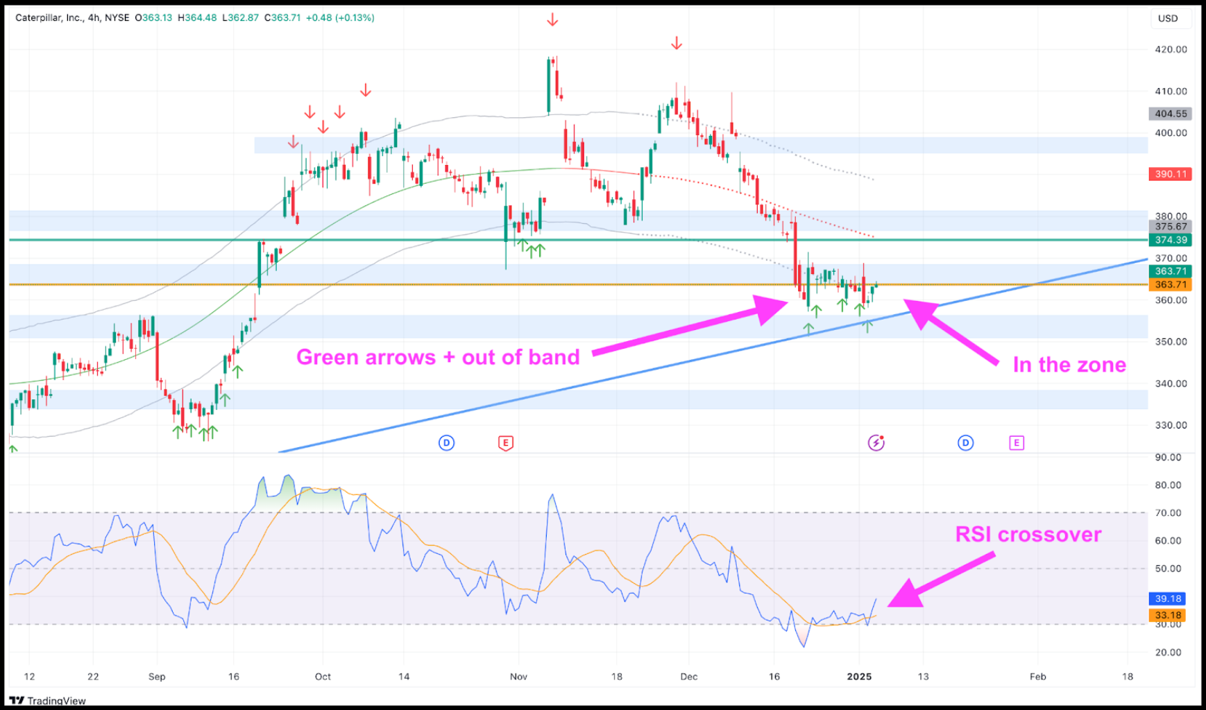 First up is Caterpillar, which presents an excellent buying opportunity at $363.71.