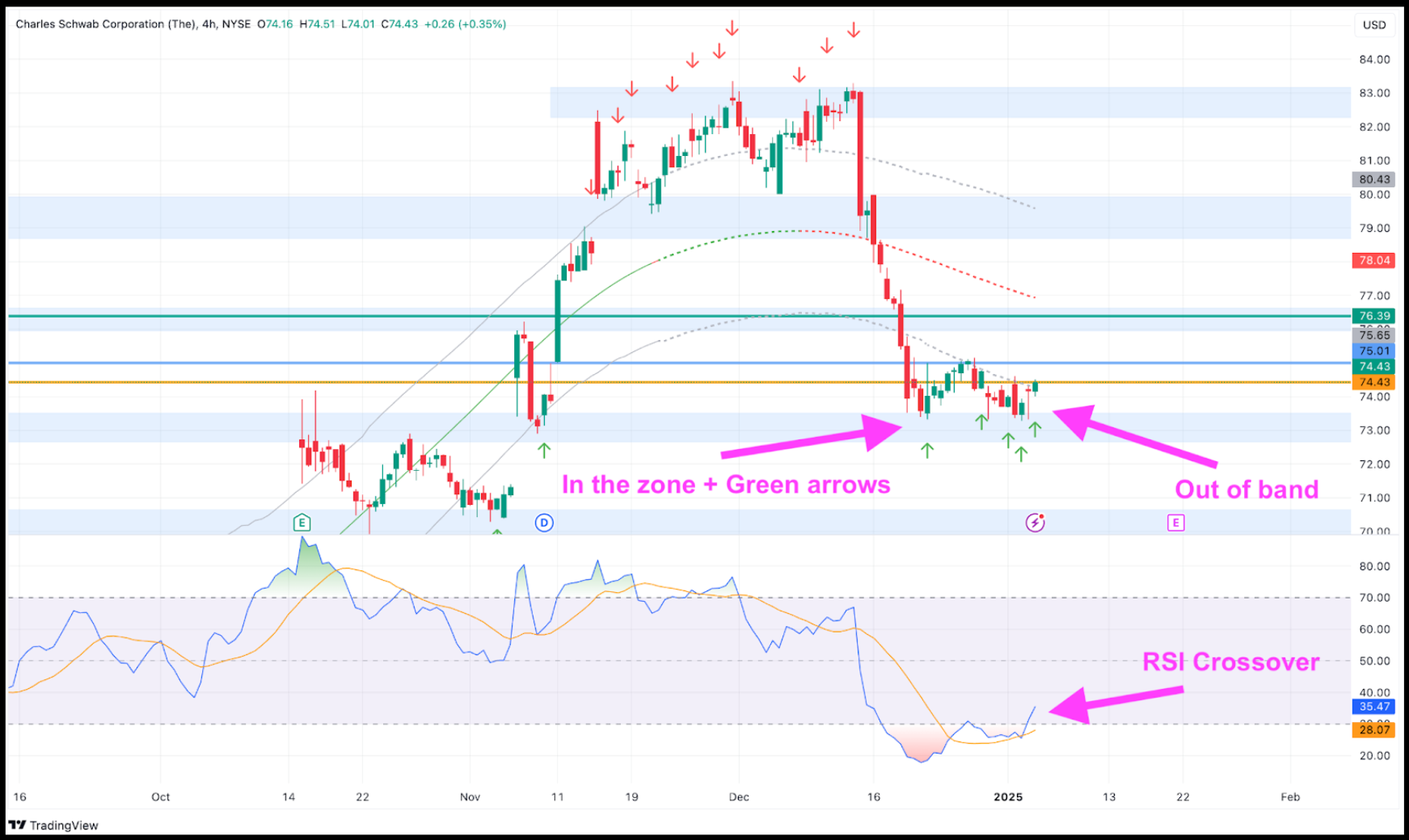 Our second recommendation is Charles Schwab, with an entry point at $74.43.
