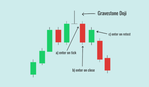 - IF: The next candle closes below the low of the Gravestone Doji...